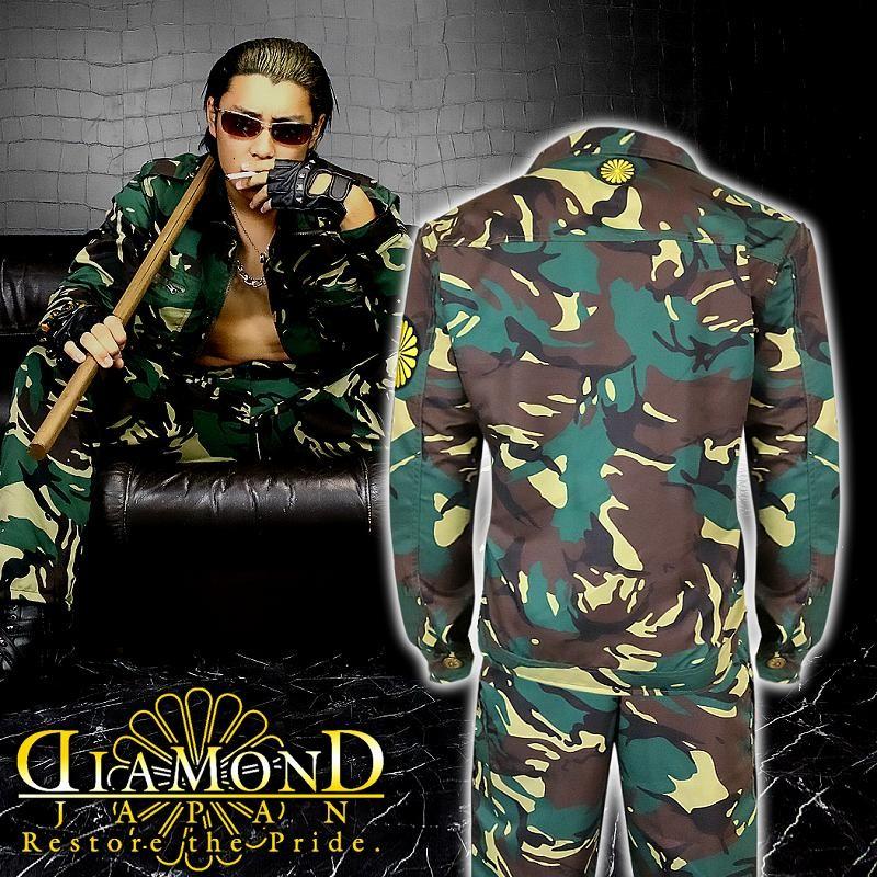 Amazon ダイヤモンドジャパン Diamond Japan 作業着 オラオラ系 メンズ ファッション ヤクザ 特攻服 迷彩 上下セット 服 菊紋 緑 ヤンキー オラオラ 悪羅悪羅 オラオラ系 Dj 149 派手 暴走族 コート ジャケット 通販